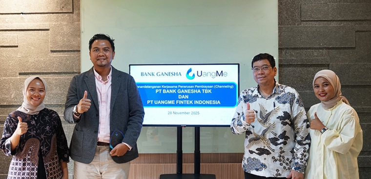 Jumat, 28 November 2025 PT Bank Ganesha Tbk dan PT Uangme Fintek Indonesia (UangMe) meresmikan kerjasama penerusan pembiayaan (channeling) kepada para penerima dana melalui aplikasi Platfrom UangMe. UangMe merupakan Platform P2P Lending yang telah berizin