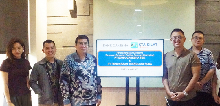 Rabu 25 Februari 2026, PT Bank Ganesha Tbk dan PT Pendanaan Teknologi Nusa (KTA Kilat) meresmikan kerjasama penerusan pendanaan secara Channeling kepada para penerima dana melalui platform Pindar KTA Kilat. PT Pendanaan Teknologi Nusa dengan platform Pind
