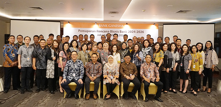 Bank Ganesha melaksanakan Rapat Kerja dalam rangka mengkomunikasikan Rencana Bisnis Bank tahun 2024-2026 kepada seluruh unit kerja. Acara ini dihadiri oleh seluruh jajaran Direksi dan Pemimpin Unit kerja. Pemaparan diawali dari Presiden Direktur Ibu Lenn